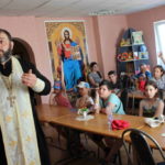 В рамках программы сотрудничества между СОШ№54 и сад-школой№23 во время летних каникул, ребята из пришкольных оздоровительных лагерей, посетили храм святого великомученика Георгия Победоносца, где их встречал священнослужитель и проводил экскурсию по храму.Ребята ознакомились с устройством храма,узнали как вести себя в храме,а также прослушали беседу о житии Георгия Победоносца.Затем ребятам показали Воскресную школу,ответили на вопросы ребят и пригласили в следующем учебном году в нашу Воскресную школу.